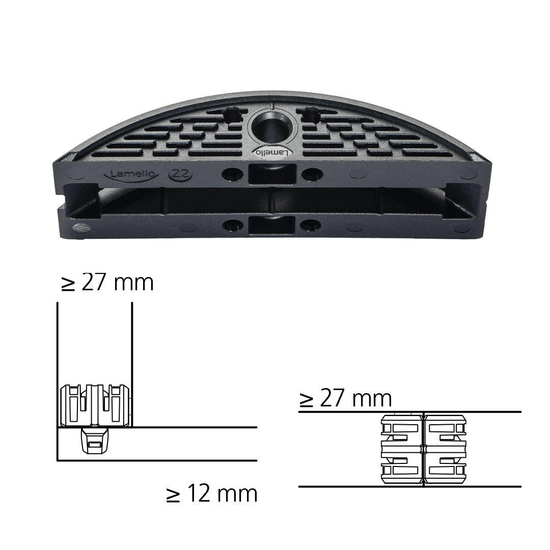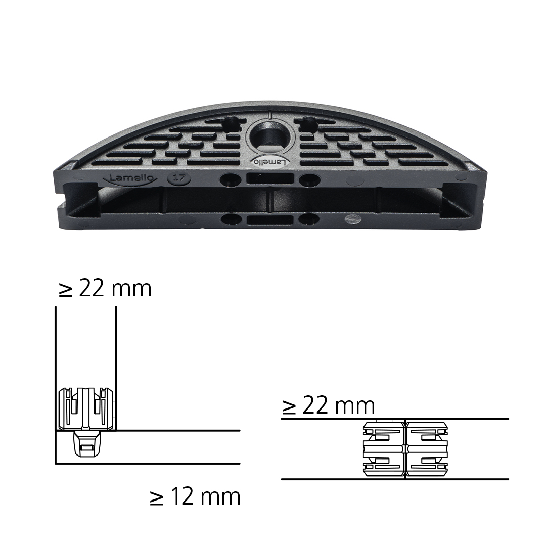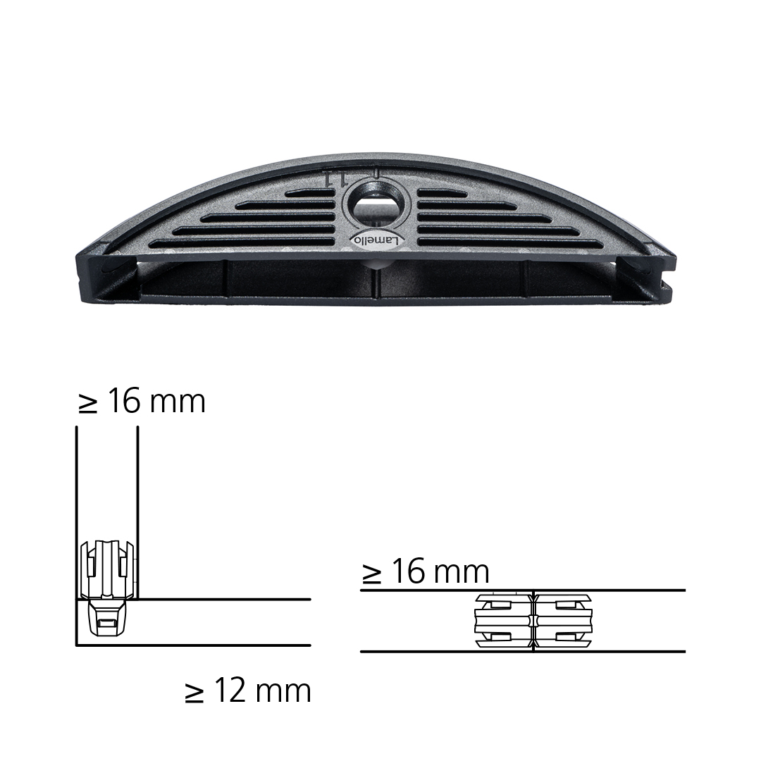 Złącze LC P-16 działa jako adapter dla złączy Clamex P-14/10 Lamello, łącząc zalety konstrukcji lekkiej z efektywnym i estetycznym systemem połączeń P-System.