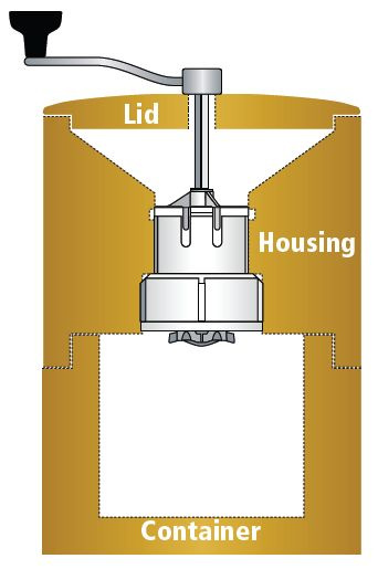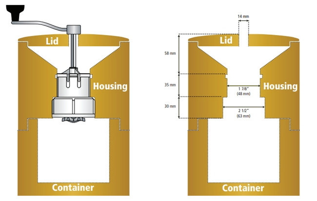 Mechanizm mielący do młynka do kawy firmy CrushGrind Record Power sprzedawany bez uchwytu.