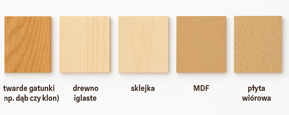 Lamelownica doskonale radzi sobie z różnymi rodzajami drewna, od twardych gatunków jak dąb czy klon, przez drewno iglaste, aż po materiały inżynieryjne - sklejkę, MDF czy płyty wiórowe. Minimalna grubość materiału to 12 mm dla najmniejszych lamelek #0, choć optymalne rezultaty uzyskuje się przy grubości 16 mm i więcej.