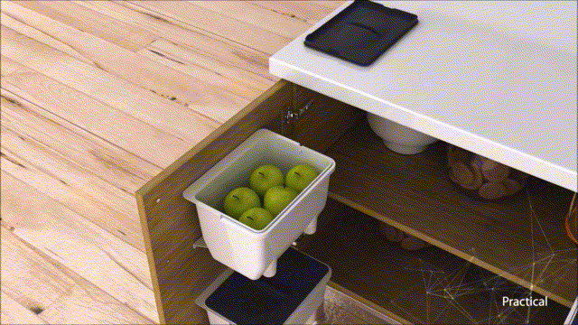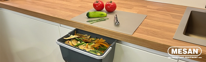 Zaczep wykorzystywany jest powszechnie do szybkiego sprzątania blatu - wystarczy zamontować pojemnik na zewnątrz drzwiczek i zgarnąć odpady od razu do pojemnika.