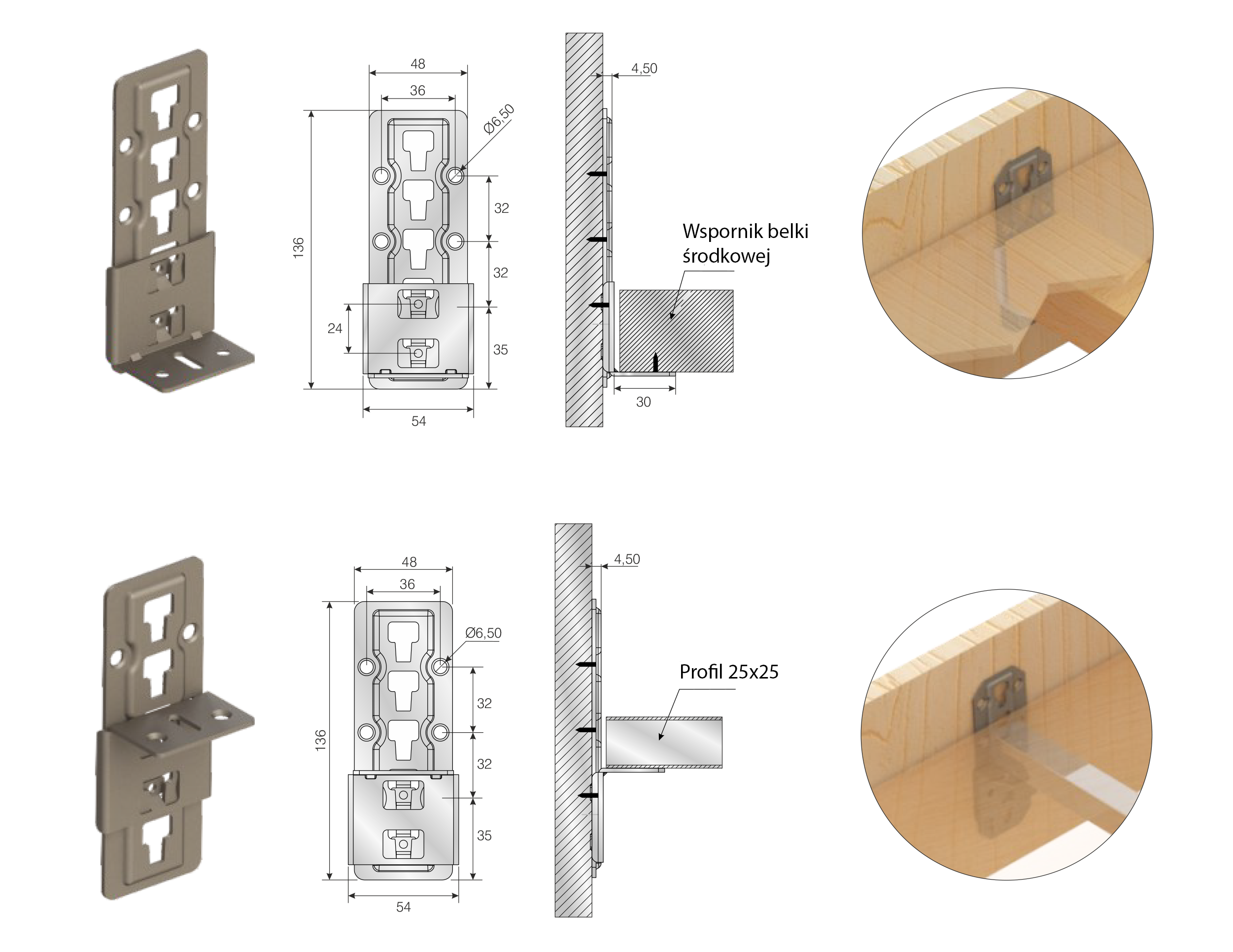- łatwość montażu, bez konieczności frezowania – wystarczy przykręcić zaczep do łóżka.