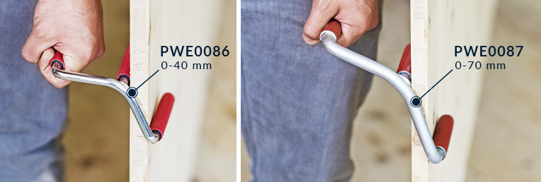 Uchwyty do przenoszenia Tragfix to innowacyjne i bardzo proste narzędzie, które znacząco ułatwia pracę m.in. z płytami z litego drewna, wiórowymi, mdf czy sklejką. Dostępne w dwóch rozmiarach – uchwyty te oferują szeroki zakres możliwości, pozwalając na pewne i efektywne chwycenie płyt o różnych grubościach.