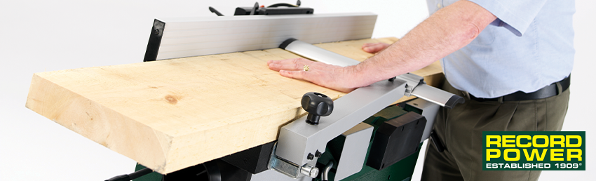 Grubościówka PT107 Record Power wyposażona jest w pokrętło ręczne przeznaczone do płynnego podnoszenia i opuszczania stołu i w łatwą do odczytu skalę precyzyjnej regulacji.