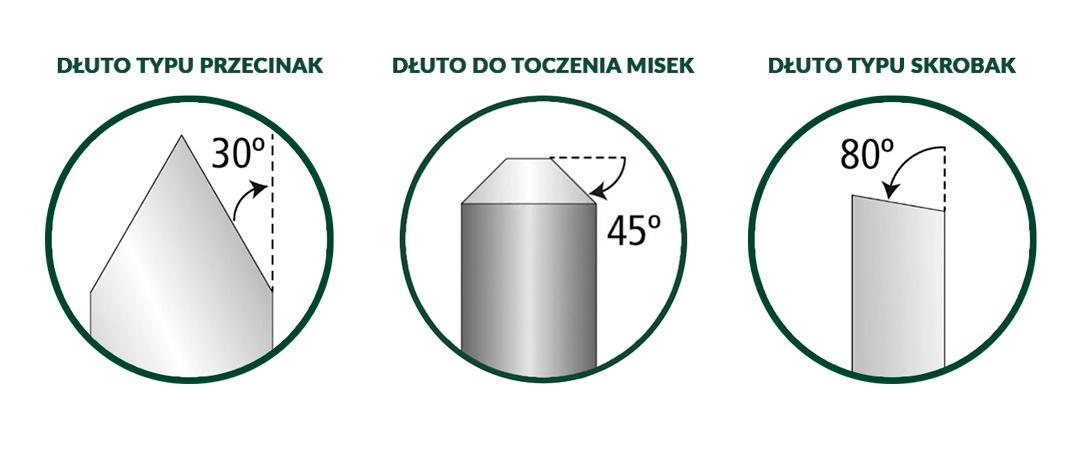 Dłuta wykonane są ze stali M2 (S600) HSS (High Speed Steel) o twardości 60-64HRC w skali Rockwella (hartowane w kąpieli solnej). Stal HSS, z której wykonane są ostrza zapewnia dłuższą żywotność i wytrzymałość krawędzi tnącej.