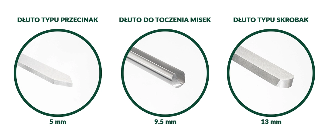 - 1x dłuto do toczenia głębokich misek 9.5 mm (3/8") - art. nr art. 103640,