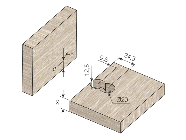 Złączka Qfix to opatentowane rozwiązanie opracowane pod kątem szybkości obróbki – aby osadzić złączkę konieczne jest wykonanie jedynie dwóch otworów o średnicy ⌀20mm i głębokości 12,5mm.