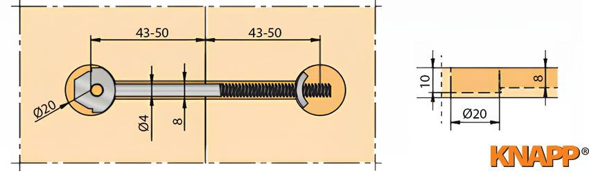 ZIPBOLT™ 100 Mini Ultra Slim to jedno ze złączy systemu stworzone z myślą o cienkich materiałach. Konstrukcja złącza pozwala na łączenie materiałów od 13 mm grubości. Złącze wymaga wykonania gniazda o głębokości jedynie 10mm.