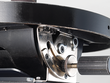Wychylenie stołu realizowane jest poprzez masywny mechanizm zębatkowym