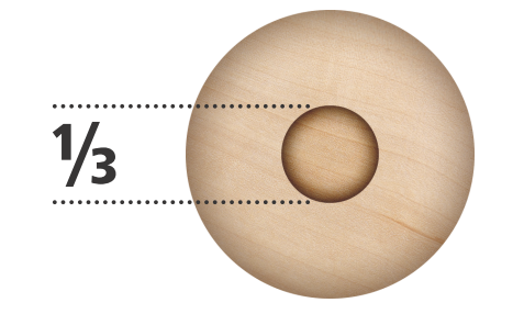 Jest to zasada, do której używa większość tokarzy podczas toczenia mis, półmisków i talerzy. Opiera się ona na założeniu, że element będzie najbardziej wyważony, gdy średnica wgłębienia lub czopa mocującego miskę w szczęce, będzie stanowić jedną trzecią jego całkowitej średnicy.