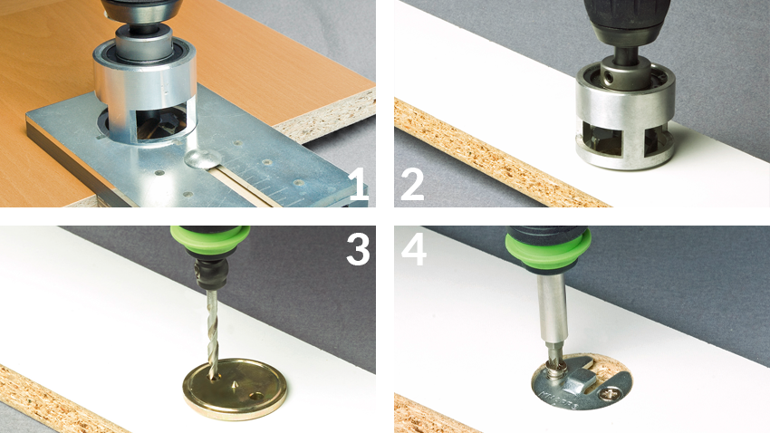 - Niewidoczne połączenia do wszystkich płyt meblarskich i drewna – wymagają wykonania tylko dwóch płytkich otworów o głębokości 3 mm