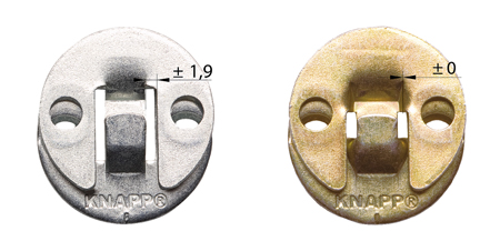 - oL (ohne Luft) – bez tolerancji bocznej (kolor złoty/miedziany). Precyzyjne, sztywne połączenie bez możliwości regulacji. Elementy pozostają w dokładnie określonej pozycji. Dla projektów wymagających maksymalnej dokładności