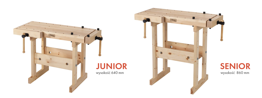 Stół JUNIOR/SENIOR stworzony został na wzór klasycznej, masywnej strugnicy stolarskiej. Zachowane zostały wszystkie najważniejsze cechy stołu stolarskiego tj. gruby blat, otwory na imaki oraz dwa masywne dociski, a wszystko to oferowane jest w kompaktowej wersji.