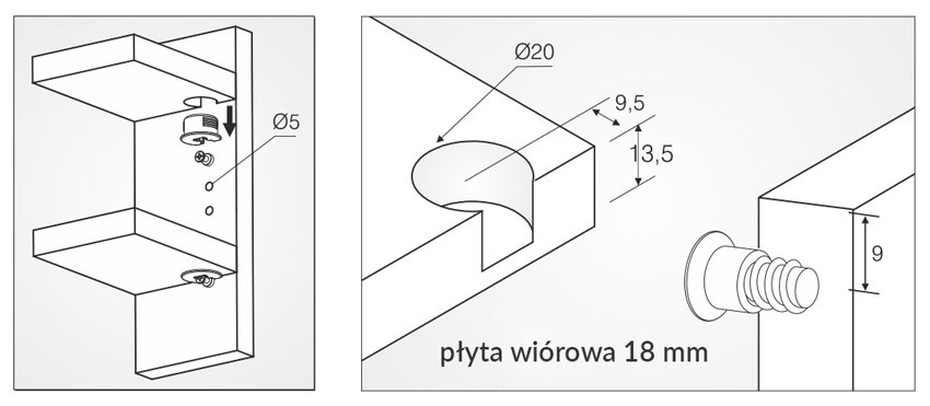 Raffix Economic to złącze meblowe przeznaczone do montażu półek z płyt o grubości od 18 mm.