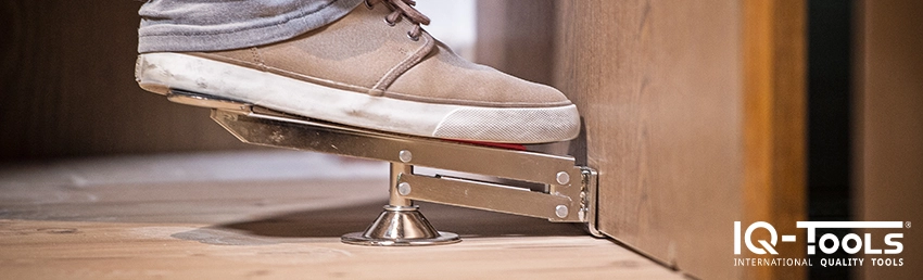 Podnośnik nożny to wszechstronne i bardzo proste w obsłudze narzędzie, które ułatwia montaż i demontaż drzwi oraz innych ciężkich przedmiotów do 120 kg. Dzięki niemu jedna osoba może samodzielnie przeprowadzić prace związane z montażem, regulacją, konserwacją czy wymianą różnych elementów, oszczędzając czas i wysiłek.