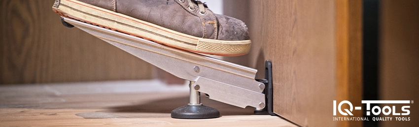 Podnośnik znacząco ułatwi Ci wyjmowanie i wkładanie drzwi w zawiasy. Ciężar przedmiotu spoczywa na podnośniku (a nie na Twoich rękach), dzięki czemu łatwiej spasować zawiasy.