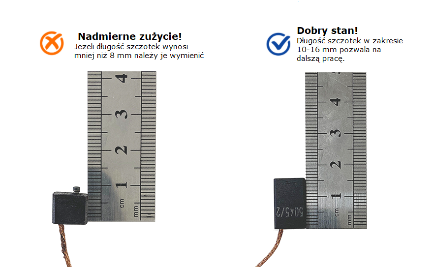 Stopień zużycia szczotek należy sprawdzać po 50 h pracy: