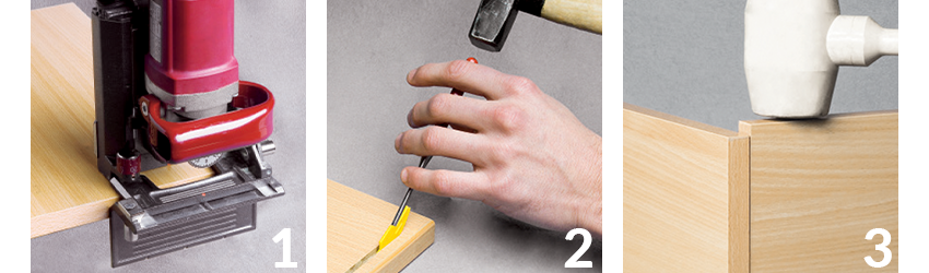 - Wyfrezuj gniazda 4 mm ręczną frezarką pod złączki bukowe/lamelki nr 20.