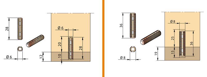 • średnica Ø8 mm i długości L = 36 mm (50/1000 szt),