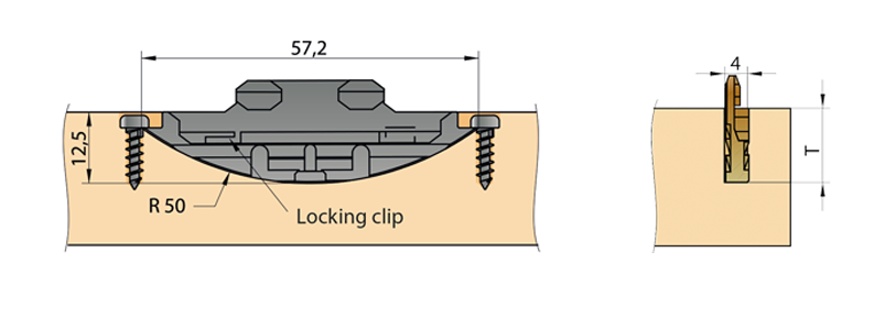 METAL to uniwersalny, rozłączny łącznik meblowy wykonany z odlewu cynkowego stworzony do niewidocznych, nośnych połączeń paneli i płyt meblowych. Dwie części złączki osadzane są i wkręcane w gniazda 4 mm wykonane przy użyciu frezarki ręcznej, lamelownicy.