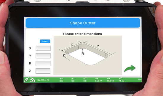 Zaprogramuj obróbkę prostych kształtów z pozycji panelu dotykowego! Specjalna aplikacja przeprowadzi Cię krok po kroku przez cały proces - od wyboru geometrii, wprowadzenia wymaganych danych, przygotowania narzędzia aż po samą obróbkę.