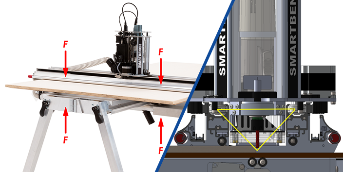 SmartBench został podzielony na podzespoły, dzięki którym montaż urządzenia jest bardzo prosty i szybki. Po prostu wyjmij podzespoły z opakowań, samodzielnie złóż urządzenie i zacznij realizować swoje projekty.